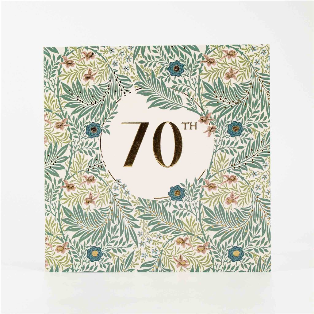 Celebrate a milestone in style with this luxurious 70th birthday card featuring an intricate Larkspur pattern. Embossed details and shimmering gold foil accents create a refined and timeless look for a truly special occasion.