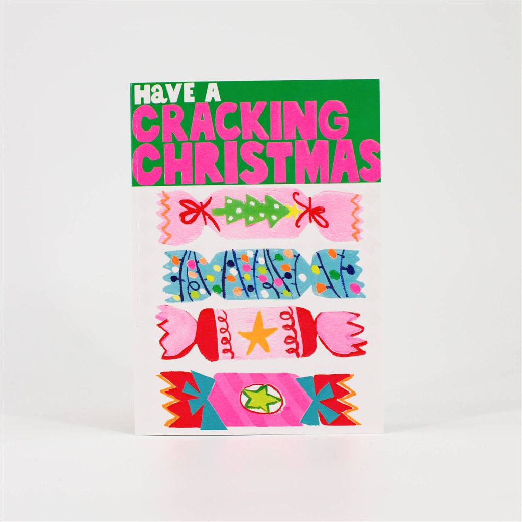 Celebrate a cracking Christmas with this vibrant card featuring bright neon-coloured crackers and embossed festive accents. A bold and joyful design that adds sparkle and fun to your seasonal greetings.