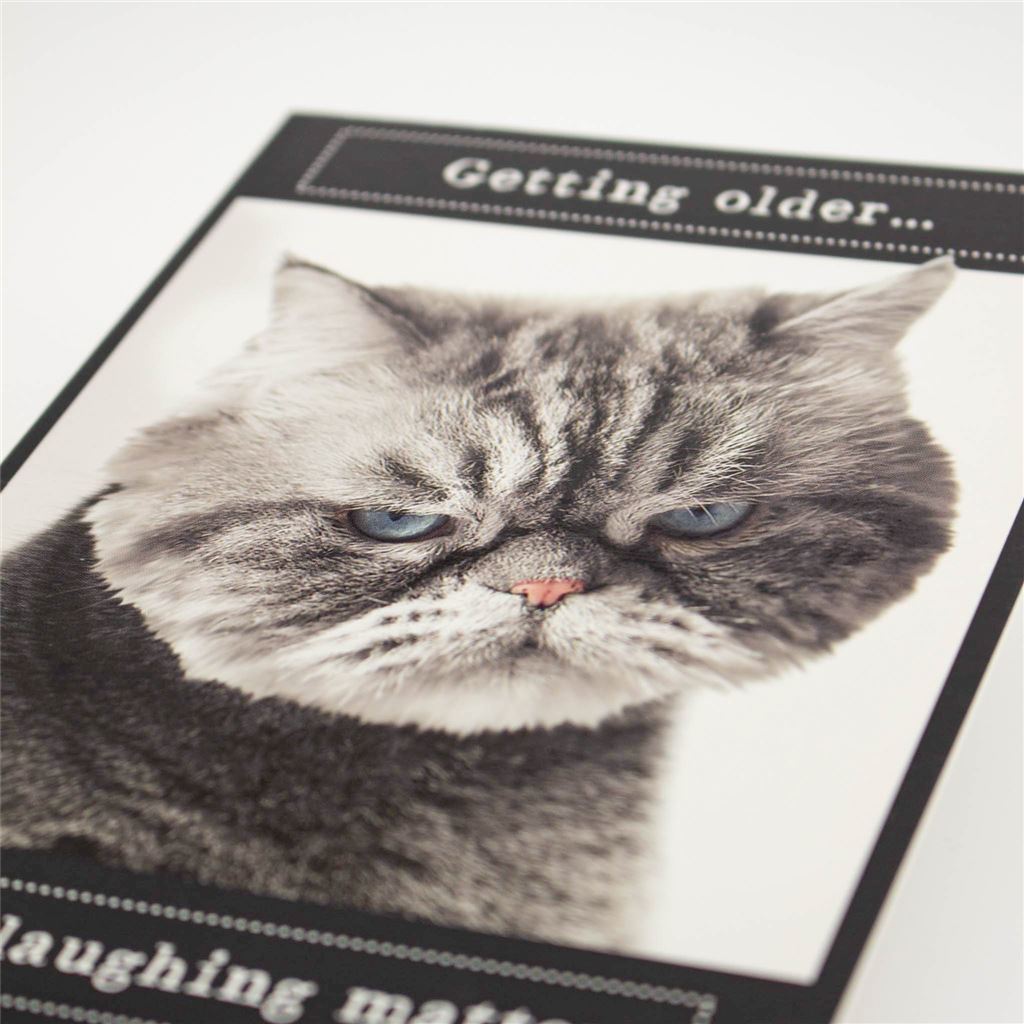 Celebrate aging with a smile using this funny card featuring a cheeky cat illustration. Perfect for birthdays or any occasion where laughter is the best gift. A playful way to remind someone that getting older can be fun!