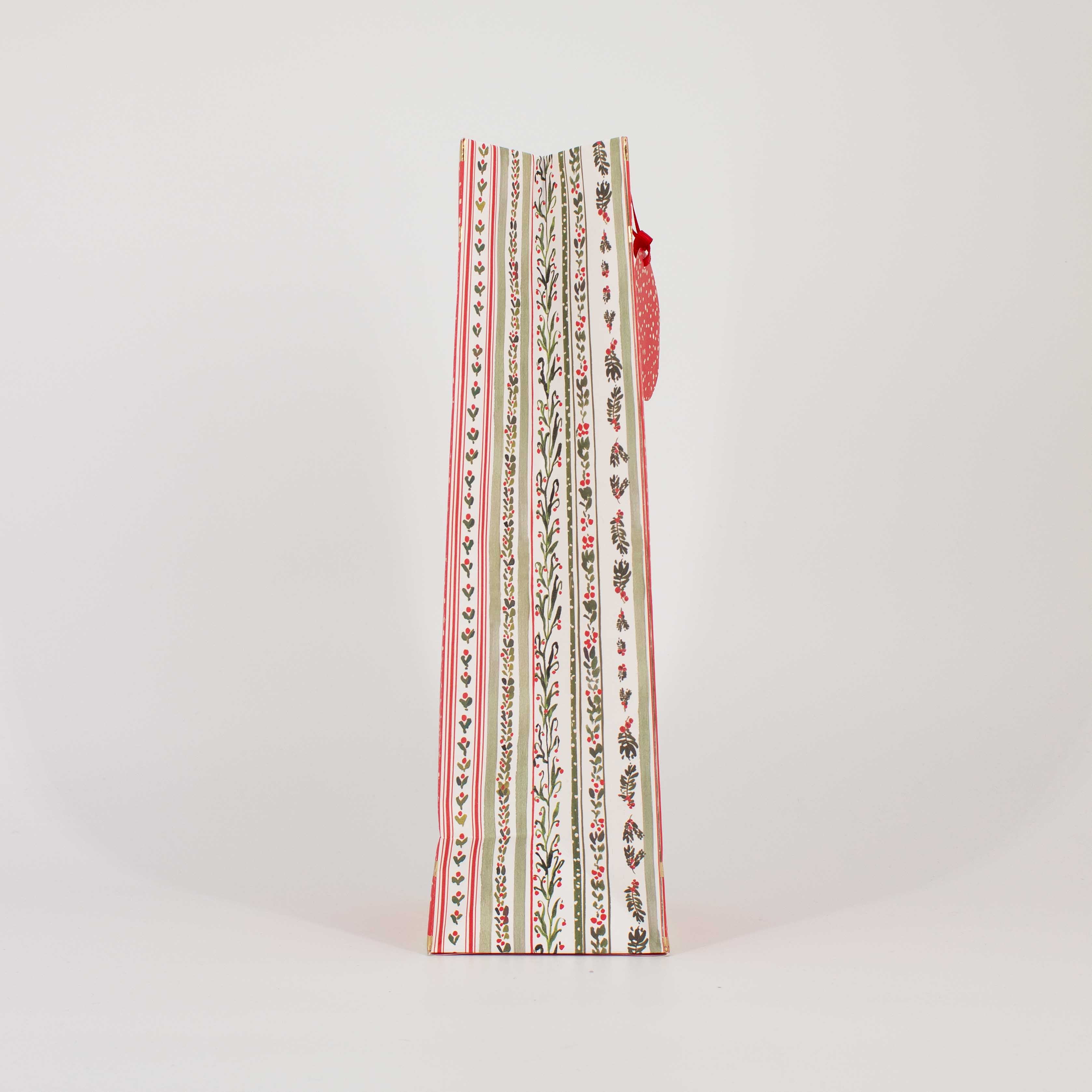 This premium bottle bag showcases a sophisticated pine motif set against a ruby red backdrop, finished with luxurious gold foil detailing. Ideal for adding festive charm and refinement to your Christmas gift presentation.