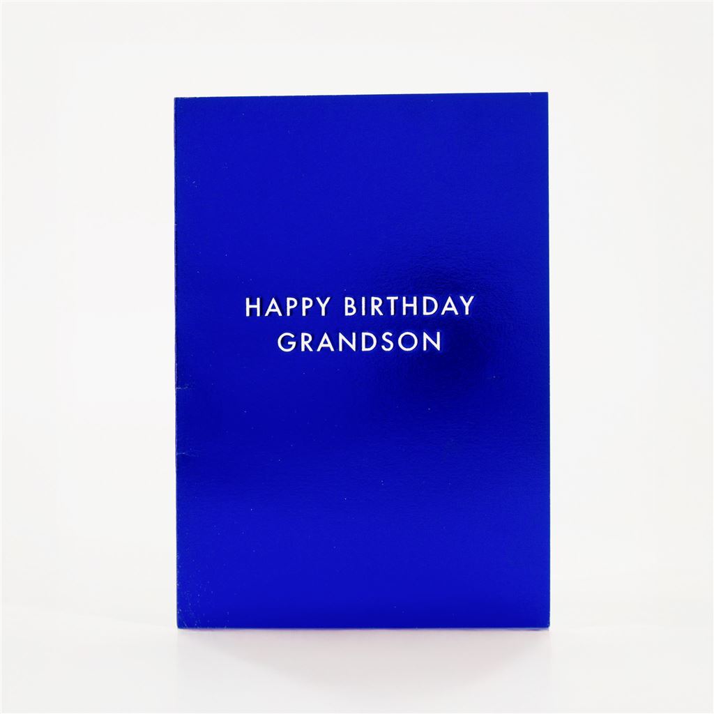 Make your grandson’s birthday extra special with this bold blue foiled greeting card. The vibrant metallic blue and clean white lettering create a modern, eye-catching design that stands out for any age.