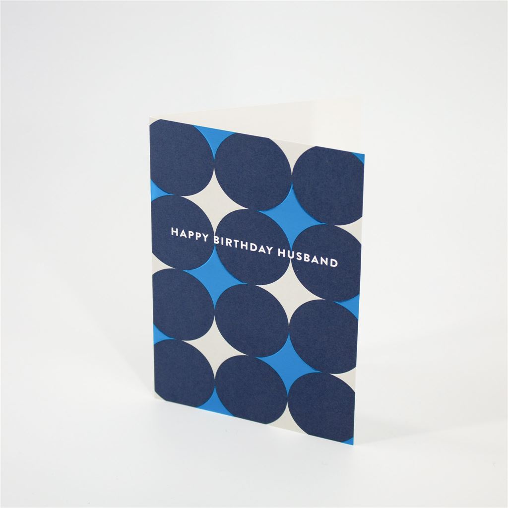 Celebrate your husband’s special day with this cheerful card featuring bold blue circles and shimmering foil accents. A modern and stylish design that perfectly expresses your love and warm wishes.